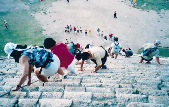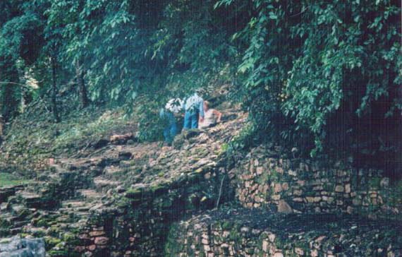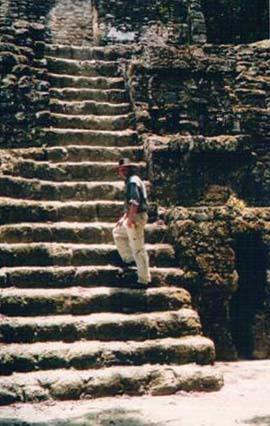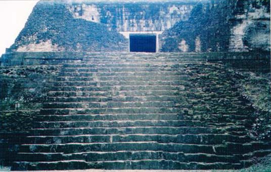 Predah na stepenicama hrama Maja, Tikal, Guatemala