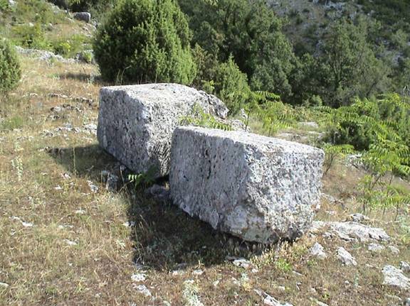 Ostaci kamenih blokova drevnog Ilirskog grada Meduna (Meteon) 12 km od Podgorice, Crna Gora